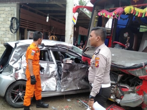 Goriau Minibus Mandala Tabrakan Dengan Mobil Brio Di Jalan