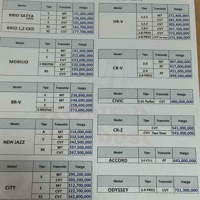Price List Kredit Mobil Honda Blognya Arantan
