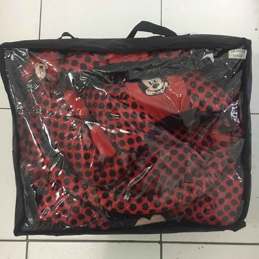 Sarung Jok Honda Brio Full Set Motif Mickey Mouse Merah Bintik